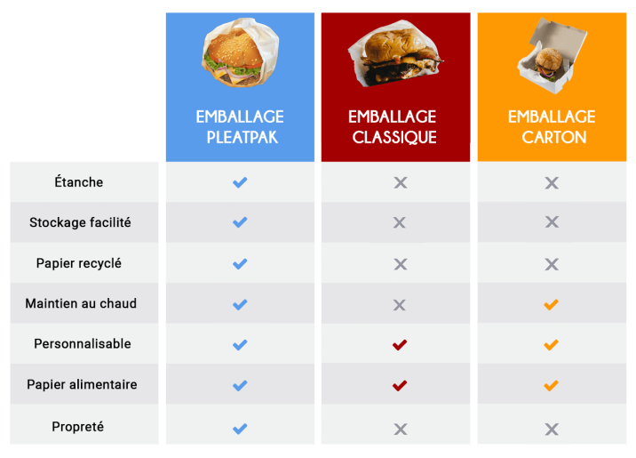 En tant que professionnel de la restauration rapide (fast-food, food truck, chaine de restauration rapide...) vous recherchez très certainement des emballages pour vos hamburgers, vos bagels, vos sandwichs... Bacchus Equipements vous propose un emballage qui va révolutionner le domaine de la restauration rapide. L'emballage Pleatpak est un produit innovant qui vous convaincra grâce à ses nombreux avantages !