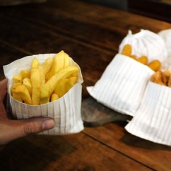 Pour accompagner vos succulents burgers, la gamme d'emballages à frites Magic Bag est parfaite ! Vos clients pourront manger proprement dans n’importe quel lieu (bureau, voiture, parc…) leurs frites chaudes et croustillantes. Et vous, vous contribuez à réduire l’impact des déchets sur l’environnement grâce à cet emballage fabriqué en papier recyclé.