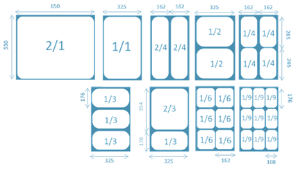 Il existe plusieurs tailles et profondeurs, les dimensions pour les Bac GN inox sont très normées mais également très diverses. Cette large gamme de dimensions est faite pour s'adapter au mieux à toutes les utilisations possibles de votre récipient, mais également pour s'adapter aux dimensions de vos appareils de cuisson. Avec une profondeur de 60 à 200 mm, il existe différentes normes pour les tailles des bacs GN.