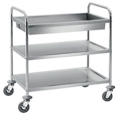 Le Chariot inox est l'outil idéal pour faciliter le dressage ou le débarassage des tables ! Avec 4 roulettes, 1 ou plusieurs plateaux et des poignées de manipulation, il vous permet de transporter efficacement et sans efforts des quantités importantes de vaisselles ou d'aliments en tous genres.