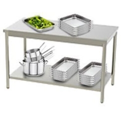Souvent installée en îlot au centre de la cuisine, la Table inox centrale sert le plus souvent à la préparation ou au dressage des plats. Ces tables inox traditionnelles sont souvent équipées d'une étagère pour ranger vos batteries de cuisine ou autres équipements professionnels. Elles peuvent aussi être montées sur roulettes pour plus de mobilité !