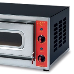 Ce four à pizza électrique compact permet de cuire des pizzas de 40 cm de diamètre. Son gabarit garantit une installation facile et rapide dans votre cuisine professionnelle. Avec une température de chauffe comprise entre 50°C et 500°C, il est aussi performant que les fours plus gros. Il possède deux thermostats mécaniques qui permettent de maîtriser indépendamment la température de la voute et celle du plan de cuisson.