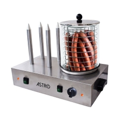 La machine à hot-dog professionnelle électrique est équipée de 4 plots inox chauffants pour le pain, et d'un cylindre en verre pour permettre une cuisson douce à la vapeur et le maintient au chaud des saucisses.