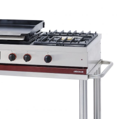 Une des spécialités de la marque française Ambassade de Bourgogne, la table de cuisson mobile avec plancha est un équipement puissant et polyvalent pour tout professionnels de la restauration.