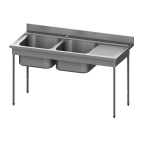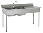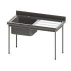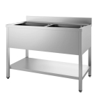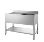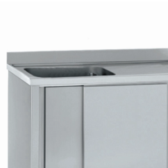 Plonge sur placard 1 bac et 1 égouttoir à droiteÉquipement indispensable à toutes cuisines professionnelles, la plonge en inox vous offre un espace dédié au nettoyage de vos ustensils ou de vos casseroles par exemple. Cette plonge sur placard est le choix idéal si vous souhaitez un espace de rangement supplémentaire. Ce modèle dispose d'un bac, d'un égouttoir nervuré à droite ainsi que d'une étagère dans le placard. La robinetterie n'est pas fournie (trou Ø 33 mm obturé pour robinet). Le placard est doté de portes coulissantes doublées suspendues sur un rail pour vous faciliter son ouverture.