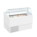 Vitrine à glaces : température négative stable, conservation 3 à 5 jours en exposition, vitrages incurvés.