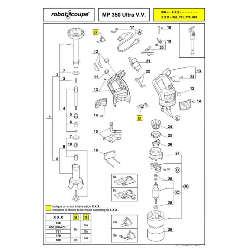 - Référence compatible 4 Réf MP350VV ULTRA / 34840L / modèle MP 350 Ultra V.V. / repère 16 / N° série 650---, 761---,770---,889---