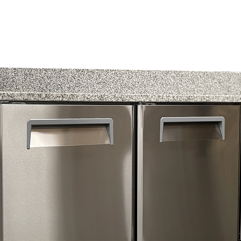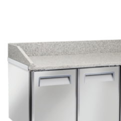 Préparez vos pizzas, sandwichs ou vos salades avec cette table réfrigérée pour pizzas. Le plan de travail en granit n'absorbe pas la température de l'aliment, idéal pour étaler vos pâtons à pizzas. Son meuble réfrigéré facilite la conservation des ingrédients pour diminuer vos temps de préparation. Pour encore plus de confort vous pouvez facilement ajouter une saladette à poser au-dessus du plan de travail et ainsi garder vos aliments à portée de main.
