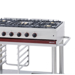 Conçu pour un usage intensif, cette table de cuisson gaz de la marque française Ambassade de Bourgogne est très performanteFiable, robuste mais surtout simple à utiliser, ce produit va rapidement devenir votre allié au quotidien pour cuire vos aliments. Équipé de 5 brûleurs allant de 1,5 kW à 5 kW sous une grille en fonte, votre sécurité est garantie par un thermocouple sur tous les brûleurs. Doté de 4 roues dont 2 avec freins de blocage vous permettant de déplacer cette table de cuisson facilement sans le moindre effort.