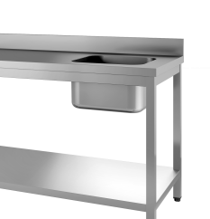 Pratique et robuste, cette table du chef 1400 mm de longueur va vous faciliter le quotidien. Dotée d'un bac à droite vous permettant de laver vos ingrédients et d'une surface de travail pour la préparation de vos produits. Pratique, cette table adossée dispose d'une étagère pour le stockage de vos matières premières. Fini les déplacements inutiles, tout est à porté de main !