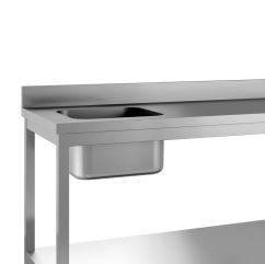 Table du chef adossée L 1200 mm bac à droite 400 x 400 x 250