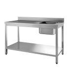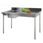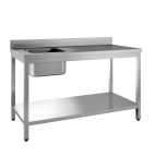 Avec cette table du chef suspendue, bénéficiez d'un espace pour la découpe et la préparation de vos ingrédients. Équipée d'un bac à gauche 400x400x250 mm ainsi que d'une robinetterie mélangeuse 15 x 21 (1/2"), nettoyez vos ingrédients avant de les préparer. Construit en inox et conforme aux normes d'hygiène, le nettoyage est simple et rapide. La fixation se fait par deux supports muraux sous le dosseret et deux consoldes tubes dotés de vérins pour le réglage de l'horizontabilité. Livré à plat sous carton.