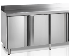 Cette table réfrigérée à dosseret est parfaite pour la préparation de vos plats en peu de temps, étant dotée d'un vaste plan de travail inox et d'une capacité de stockage de 533L.
