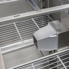 Les tables réfrigérées Cool Head sont conçues pour s’adapter à l’utilisateur et répondre à ses besoins. Elles se différencient de la concurrence grâce à une isolation de 60 mm au lieu de 50 mm et du dégivrage automatique avec chauffage électrique. Pour faciliter le nettoyage et garantir un réel confort d’utilisation, nos tables positives disposent de toutes les astuces pour gagner du temps : coins arrondis et bords internes incurvés, joints amovibles, construction en acier inoxydable…