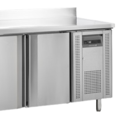 Le comptoir réfrigéré avec dosseret en inox 304 résistant, est idéal pour les cuisines professionnelles, offrant un accès pratique aux ingrédients frais grâce à ses étagères GN1/1 et son dégivrage automatique.