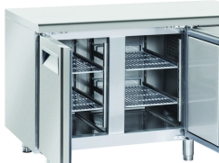 Cette table réfrigérée négative offre un espace de stockage froid de 230L. Recommandée pour les espaces restreints, combinant plan de travail en inox et réserve réfrigérée.