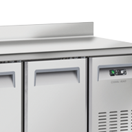 Cette table réfrigérée négative à dosseret combine plan de travail fonctionnel en inox et espace de stockage réfrigéré de 570L, ce qui la rend parfaite pour la préparation de vos plats.