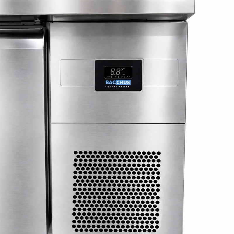 Pour cette table réfrigérée, tout est dans le confort d’utilisation et la performance ! Le design intérieur a été travaillé pour que l’air froid soit bien ventilé et se diffuse dans toute l’enceinte de stockage en garantissant un résultat optimal. Le réglage de la température se fait manuellement sur un panneau digital pour que vous ayez un réel contrôle sur votre équipement. Et le nettoyage est simplifié par des angles arrondis, des joints amovibles ou une conception clean-free pour le condenseur qui ne nécessite plus d’entretien. Cette table positive est l’équipement parfait pour votre espace de préparation.