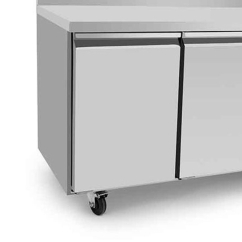 Pour votre confort, ce meuble froid est équipée d’un affichage digital de la température en façade. Afin de faciliter le nettoyage de vos sols, elle est livrée avec 4 roulettes pour la déplacer plus aisément. Pour votre sécurité, 2 des roulettes disposent de freins à l’avant. Cette table réfrigérée est équipée d'un gaz réfrigérant "naturel" R290 connu pour son faible impact sur l'environnement.