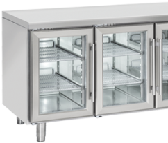 Cette table réfrigérée positive vitrée combine plan de travail inox fonctionnel et un espace de stockage réfrigéré de 358L, ce qui la rend parfaite pour la préparation rapide de vos plats.
