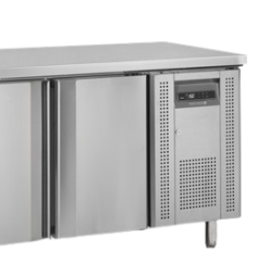 Dotée de quatre portes à charnières à fermeture automatique et de clayettes ventilées, cette table bénéficie d'une circulation d'air uniforme et d'une température stable. Avec une consommation énergétique annuelle de seulement 1398 kWh et un niveau sonore de 42 dB(A), elle allie efficacité et discrétion.