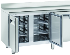 Cette table réfrigérée avec construction en acier inoxydable, garantit un nettoyage facile et rapide. Modifiez la hauteur de ce meuble réfrigéré grâce à ses pieds réglables allants de 145 à 185 mm.