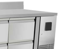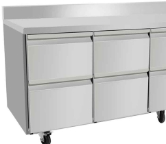 Dotée de ses 8 tiroirs 1/2 avec une hauteur intérieure maximum de 150 mm, organiser facilement l'espace de stockage de cette table réfrigérée.