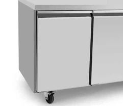 Afin de faciliter le nettoyage de vos sols, cette table est livrée avec 4 roulettes pour la déplacer plus aisément. Pour votre sécurité, elle est dotée de 2 des roulettes de série avec freins à l’avant. Cette table réfrigérée est équipée d'un gaz réfrigérant "naturel" R290 connu pour son faible impact sur l'environnement.