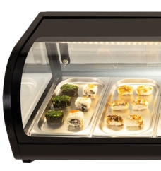 Cette vitrine à sushis professionnelle de 93 litres est fiable et très pratique. Équipée d'un thermostat numérique, règlez facilement la température intérieure de 0°C à +5°C. Dotée d'un éclairage intérieur LED, cette vitrine est design et vos sushis seront mis en avant de façon élégante.