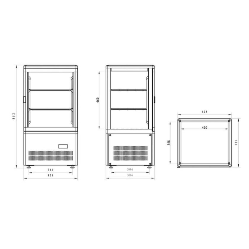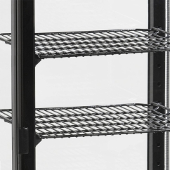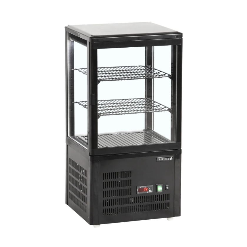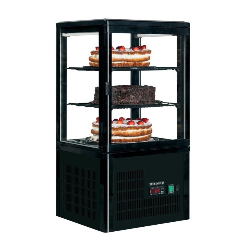 Compacte et élégante, cette vitrine réfrigérée de comptoir de 60 litres s’intègre facilement dans tout type d’établissement grâce à sa finition en ABS noir. Fonctionnant avec le gaz réfrigérant R600a, elle offre une solution plus respectueuse de l’environnement, tout en assurant un fonctionnement discret avec un niveau sonore de 42 dB(A). Son système de froid ventilé, associé à une régulation électronique et à un dégivrage automatique, permet de maintenir une température stable et ajustable entre +2 °C et +12 °C. La présentation des produits est facilitée grâce aux 4 parois vitrées, à l’éclairage LED intégré.